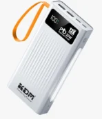 - Stay powered up with the KDM – 10X POWER, a compact 12,000mAh power bank in sleek white. It offers 30W fast charging, supports Micro USB, USB, and Type-C inputs, and provides multiple outputs for versatile charging. The LED indicator keeps you informed of the battery status, ensuring you’re always ready to go.
